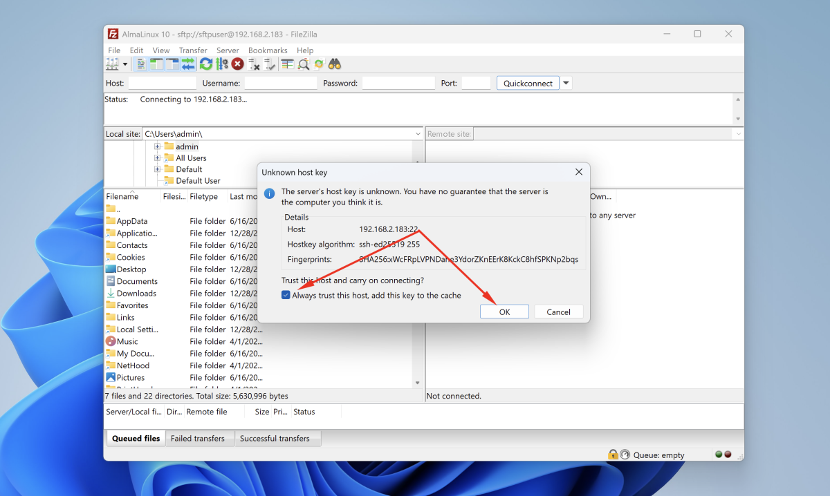 Congratulations, you have successfully set up an SFTP server on AlmaLinux 10.