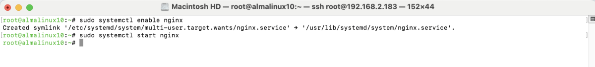 Enable and start the Nginx service:
