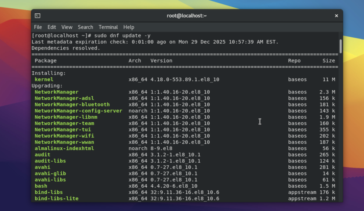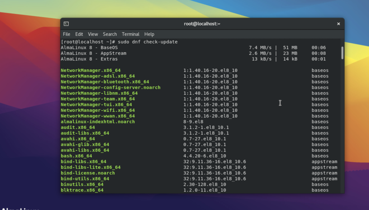 Congratulations, you have successfully updated your AlmaLinux 8 system.